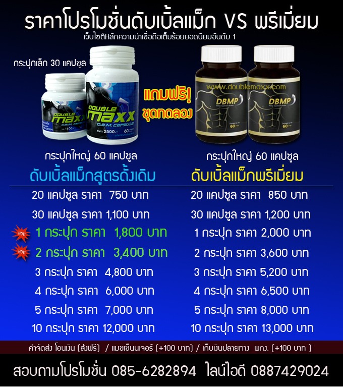 ศูนย์จำหน่ายผลิตภัณฑ์ ดับเบิ้ลแม็กรุ่นดั้งเดิม ดับเบิ้ลแม็กซ์ Double-maxx ทางอินเตอร์เน็ต เพื่อความปลอดภัยมั่นใจเต็มร้อย-หายห่วง ลูกค้าสามารถสั่งซื้อผลิตภัณฑ์ DoubleMaxx กับเราได้ที่เว็บไซต์หลักศูนย์ใหญ่หนึ่งเดียวในประเทศไทย www.doublemaxx.com ช่องทางการสั่งซื้อออนไลน์ ผ่านระบบอินเตอร์เน็ต รองรับลูกค้าจากรายการเคเบิ้้ลทีวี รายการวิทยุ เว็บไซต์ ทุกเครือข่าย ลูกค้า มั่นใจสั่งซื้อที่นี่การันตีของแท้ 100% เพราะท่านได้สั่งซื้อดับเบิ้ลแม็กซ์ จากบริษัทโดยตรง สุดยอดผลิตภัณฑ์สมุนไพร บำรุงร่างกาย ดับเบิ้ลแม็กซ์ สำหรับสุภาพบุรุษทุกท่านที่กำลังมีปัญหาทำให้คุณผู้ชายหลายท่าน ขาดความมั่นใจ ปัญหาเหล่านี้จะหมดไป เมื่อท่านใช้ผลิตภัณฑ์ สมุนไพร ดับเบิ้ลแม็ก double maxx ด้วยการตอบรับที่ดีเยี่ยมด้วยยอดขายที่เพิ่มขึ้นอย่างรวดเร็ว และการซื้อซ้ำอย่างต่อเนื่อง ลูกค้าหลายท่านๆโทรมาขอบคุณที่ทำให้ชีวิตเขากับมามีชีวิตชีวา กระชุ่มกระชวย ฟิตปึ๋งปั๋ง เสมือนมาเป็นหนุ่มอีกครั้ง ช่วยให้ชีวิตครอบครัวมีความสุขกับมาอีกครังผลิตภัณฑ์ดับเบิ้ลแม็ก ดับเบิ้ลแม็กสีฟ้าสูตรเดิมจะมีกล่องภายนอกด้วย และมีสูตรใหม่พรีเมี่ยมกระปุกสีดำ เพื่อให้ลูกค้าได้สัมผัสกับสูตรใหม่ที่ลงตัวมากๆ